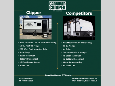 Canadian Camper is not responsible for any misprints, typos, or errors found in our website pages. Any price listed excludes sales tax, registration tags, and delivery fees. Manufacturer pictures, specifications, and features may be used in place of actual units on our lot. Please contact us @587-989-1271 for availability as our inventory changes rapidly. All calculated payments are an estimate only and do not constitute a commitment that financing or a specific interest rate or term is available.